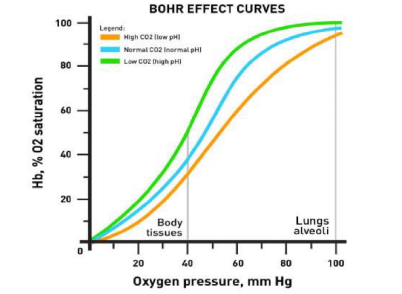 -oxygen more readily released to the tissues and more for aerobic respiration