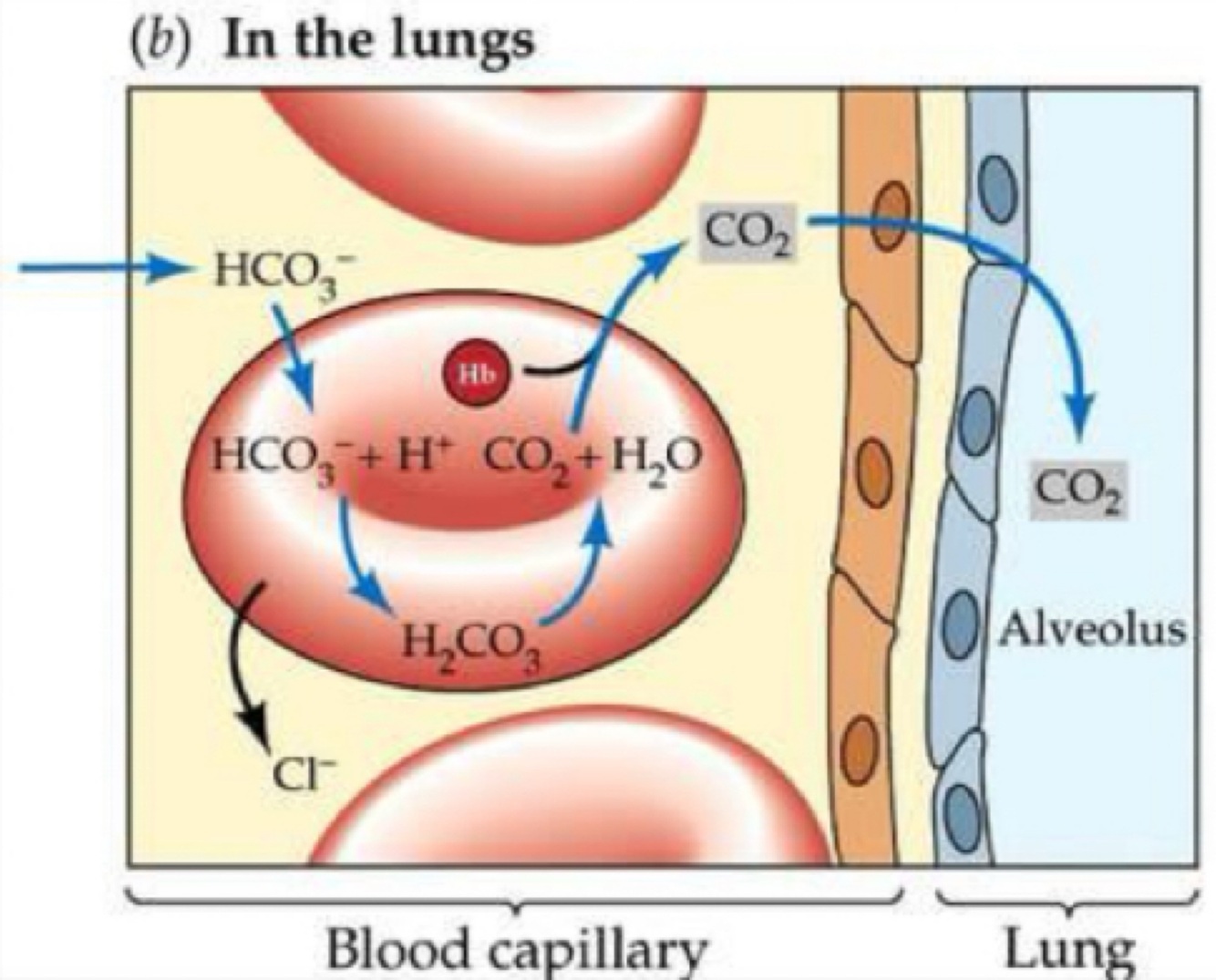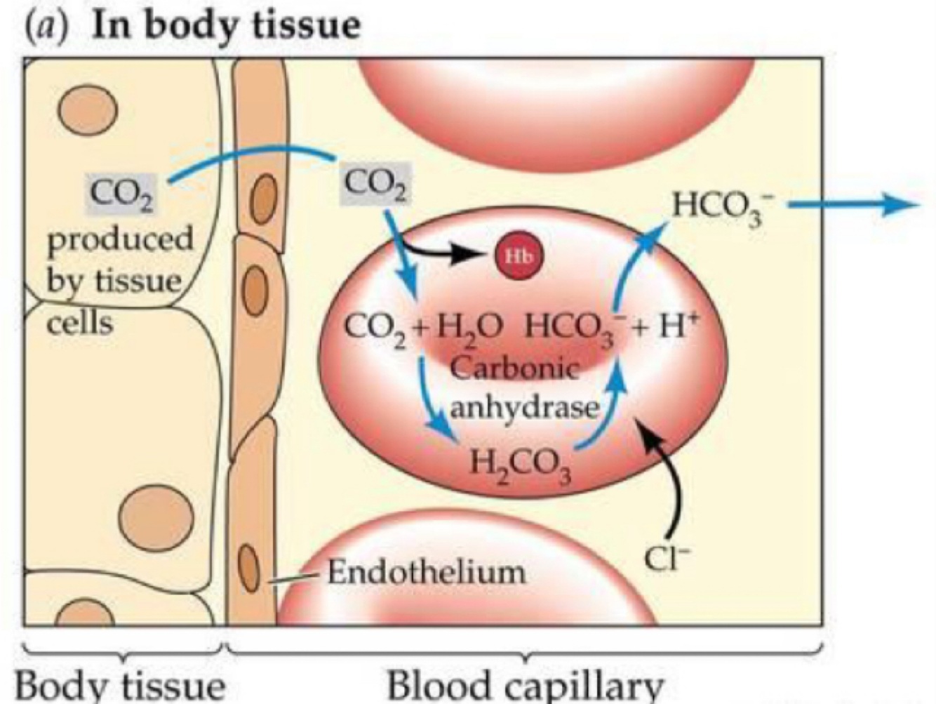 -increased amount of CO2 released from cells during aerobic respiration transported to blood