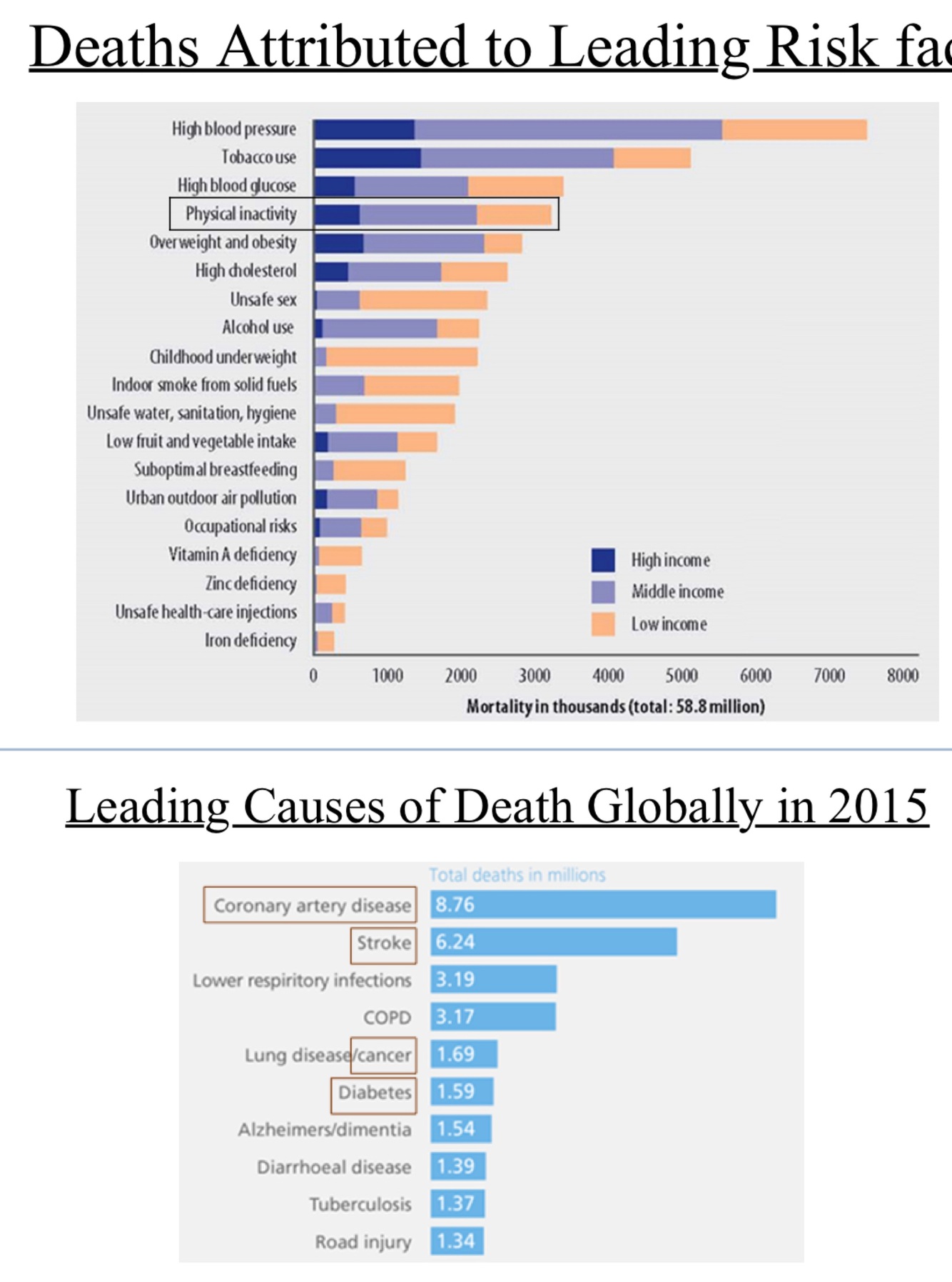Understand that these risk factors can be directly related to physical inactivity so technically one of the leading causes of death globally can occur as a result of inactivity