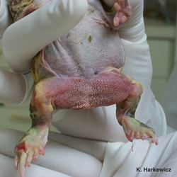 Classic “Red leg syndrome” in frogs is a result of ___________