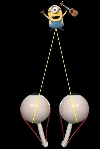 Os olhos realizam convergência para garantir que a imagem do objeto se forme sobre ambas as fóves (Pontos Retínicos Correspondetes), formando uma única imagem cortical