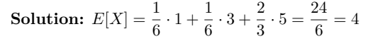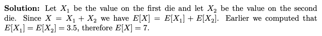 Roll two dice and let 𝑋 be the sum. Find 𝐸[𝑋].