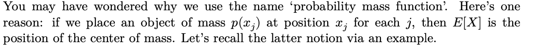 The expected value is the point at which the distribution would balance