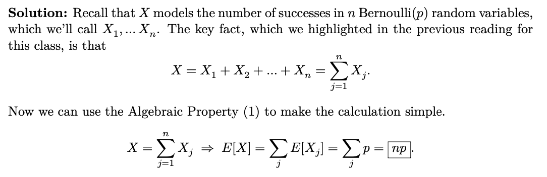 Let 𝑋 ∼ binomial(𝑛, 𝑝). Find 𝐸[𝑋]