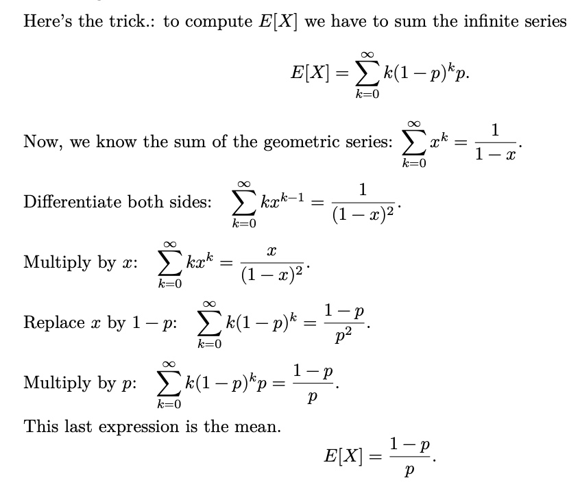 Mean of a geometric distribution