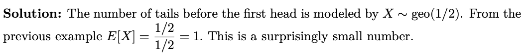 free throws) before the first heads (missed free throw) is modeled by a 𝑋 ∼ geo(0.2). We saw in Example 9 that this is