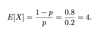 Here is an example where we want the number of successes before the first failure. Using the neutral language of heads and tails: success is tails (probability 1 − 𝑝) and failure is heads (probability = 𝑝). Therefore 𝑝 = 0.2 and the number of tails (made