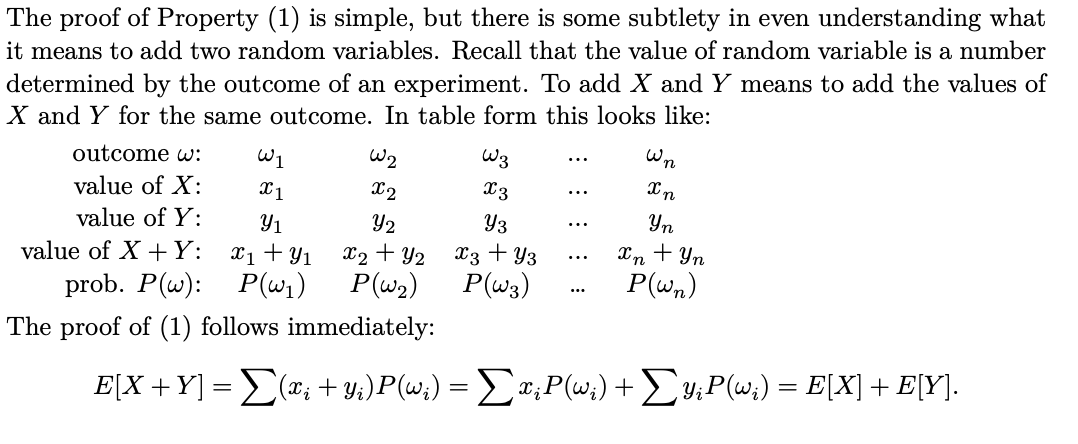 prove that for random variables 𝑋 and 𝑌 on a sample space Ω: 𝐸[𝑋 + 𝑌 ] = 𝐸[𝑋] + 𝐸[𝑌 ]