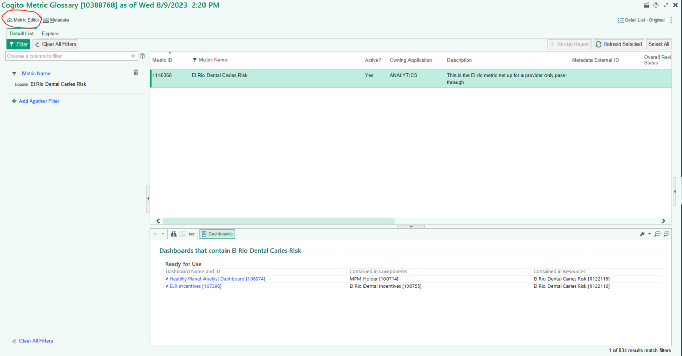 True or False: When the report finally runs to search for a SQL metric, the metric editor is easily accessible at the top?