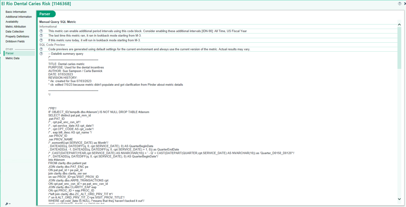 False, if the data source for a metric definition is a SQL database, it is possible to use the metric editor to investigate the query that returned those values.