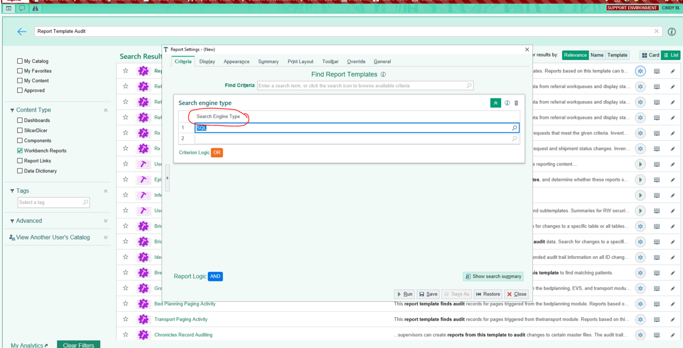 How would you go about finding reporting workbench templates that user the cogito SQL search engine?