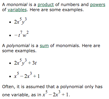What are monomials and polynomials?