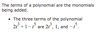 What are terms of a polynomial?