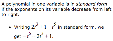 What is the standard form of a polynomial?