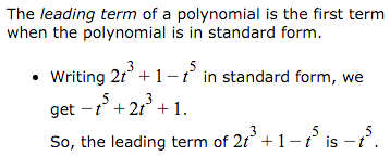 What is the leading term of a polynomial?