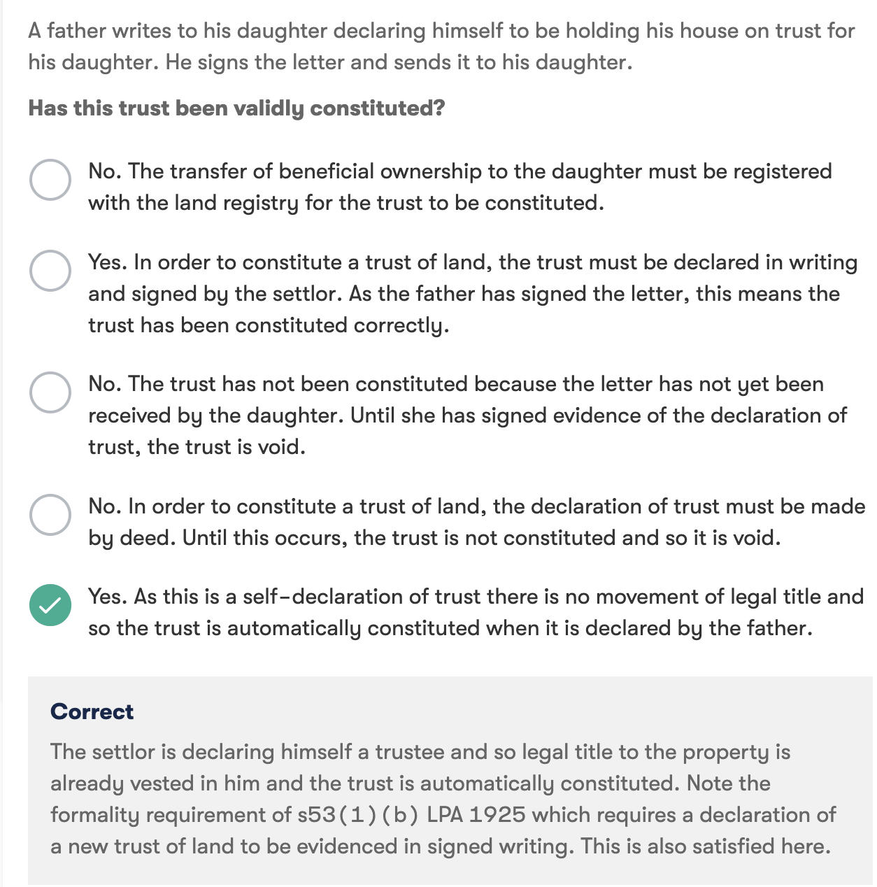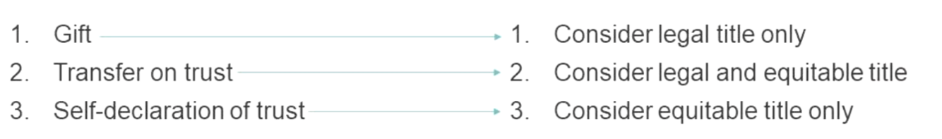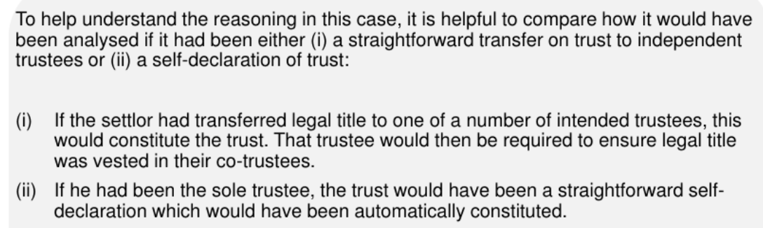 Distinguish ‘declaration’ from ‘constitution’ (transfer of legal title)