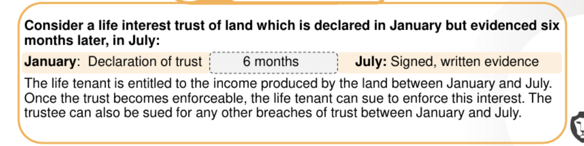 What can Bs enforce their rights in respect of over trust on land once trust becomes enforceable?