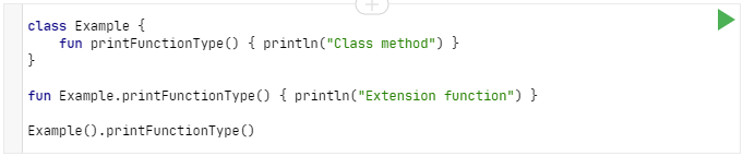 If a class has a member function, and an extension function is defined which has the same receiver type, the same name, and is applicable to given arguments, the ___ always wins.