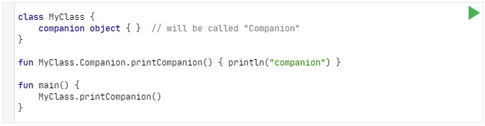 If a class has a ___ object defined, you can also define extension functions and properties for the ___object.