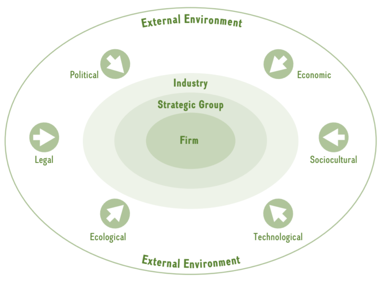 The PESTEL model groups the factors in the firm’s general environment into six segments: