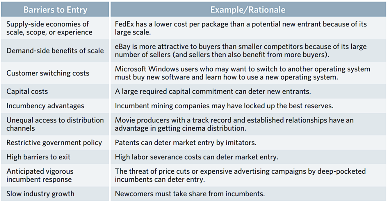 If barriers to entry are high, a potential newcomer will pose less threats.