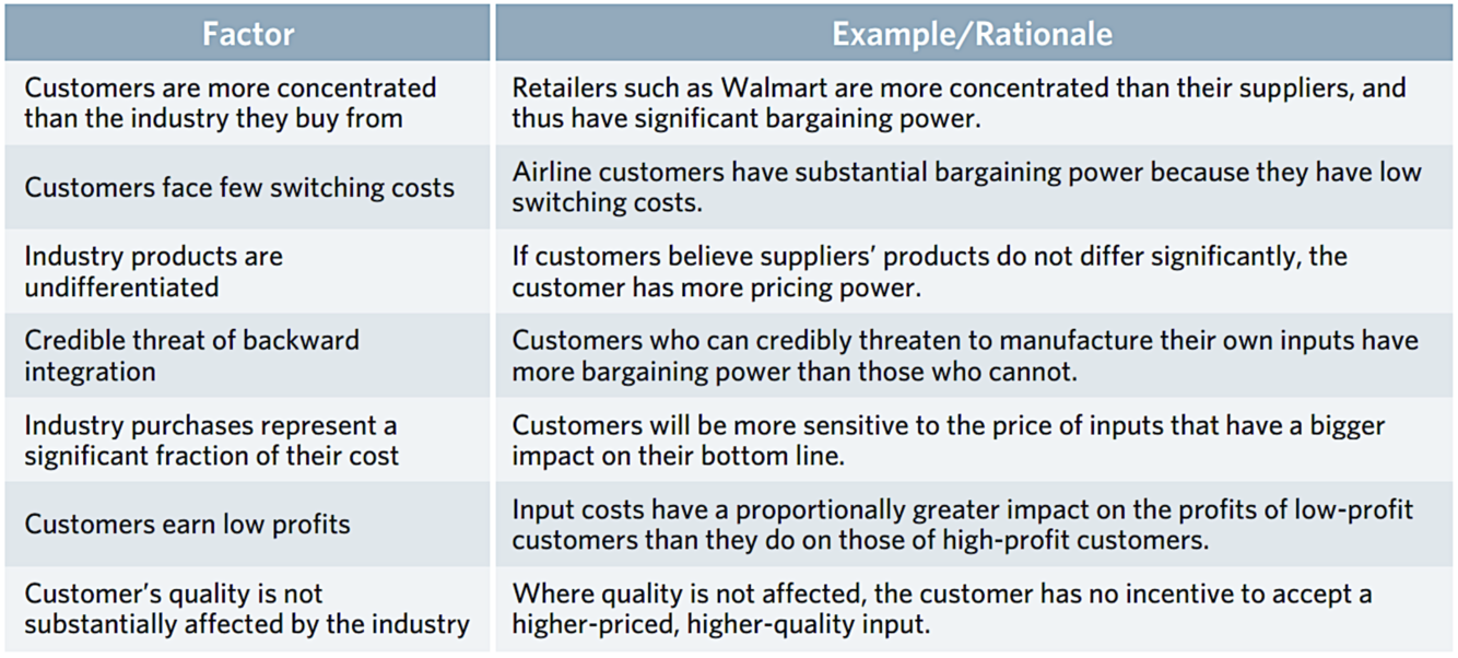 Pressure an industry’s customers can put on the producer’s margins in the industry by demanding a lower price or higher product quality