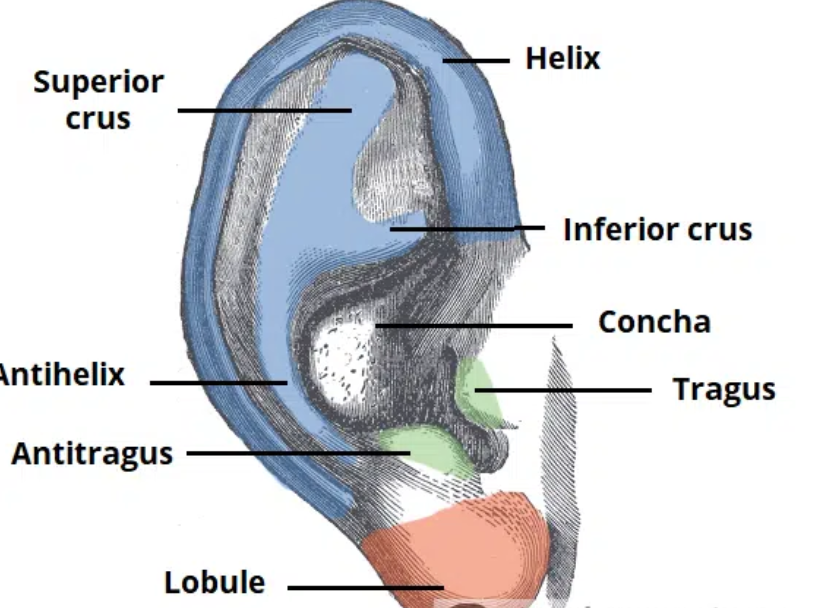hollow depression in the middle of the auricle that continues into the skull as the external acoustic meatus