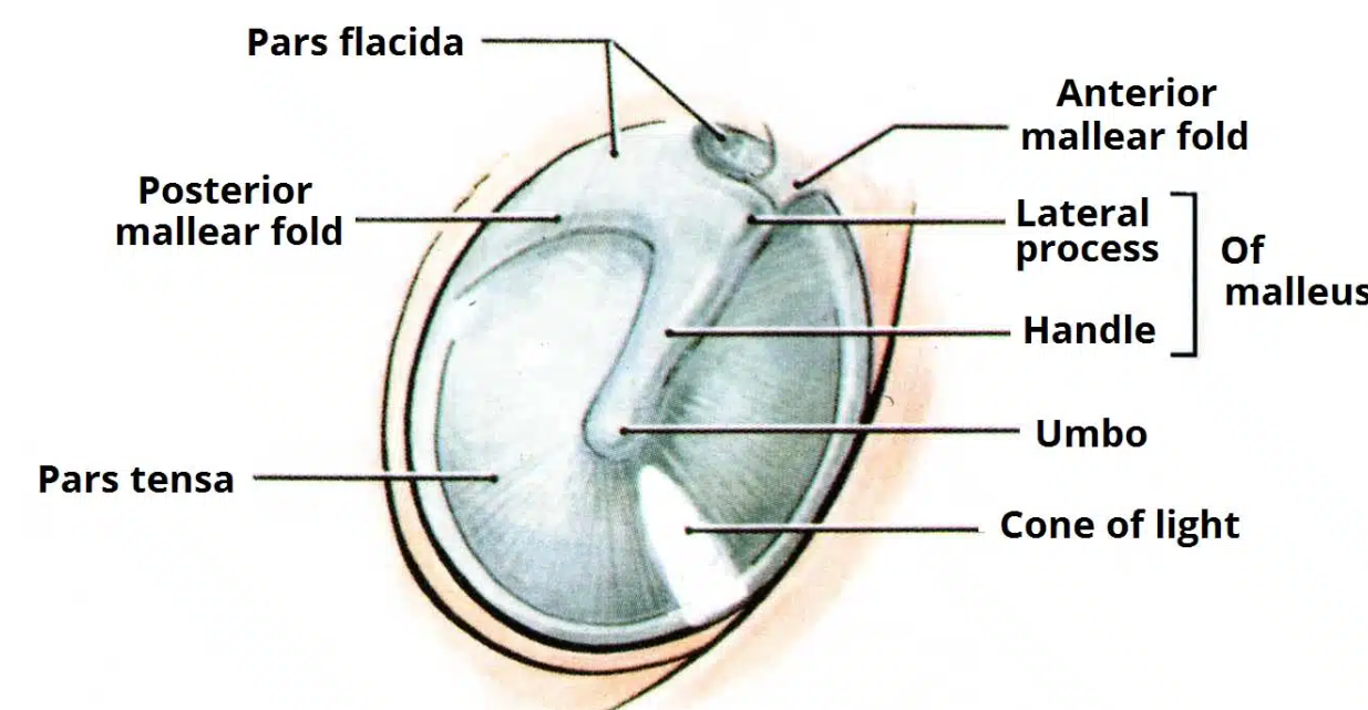how can the structures of the middle ear be observed during otoscopy, if the tympanic membrane sits in front of them?