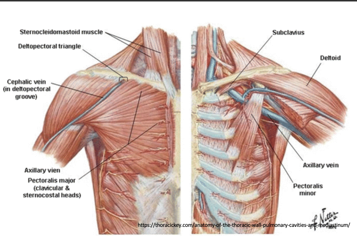 -Describe the clavipectoral fascia and the blood vessels and nerves that penetrate this fascia.