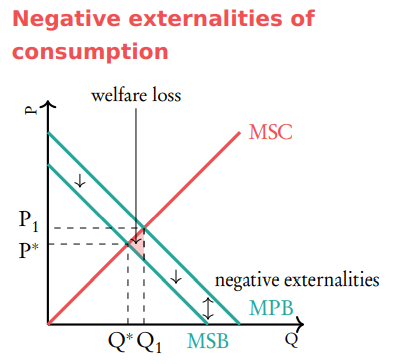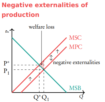 Negative externality of production on graph (welfare loss)