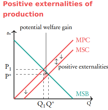 Positive externality of production graph (welfare gain)