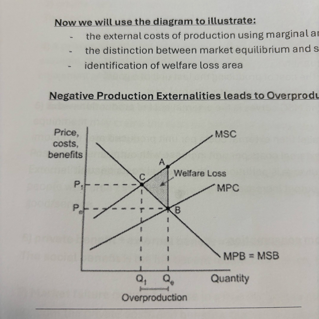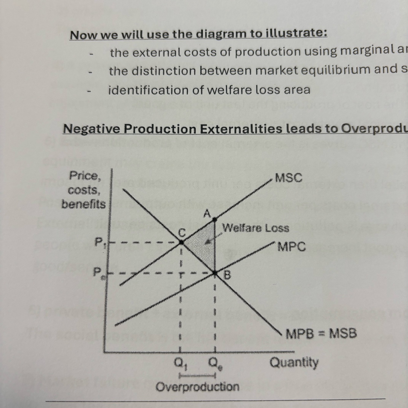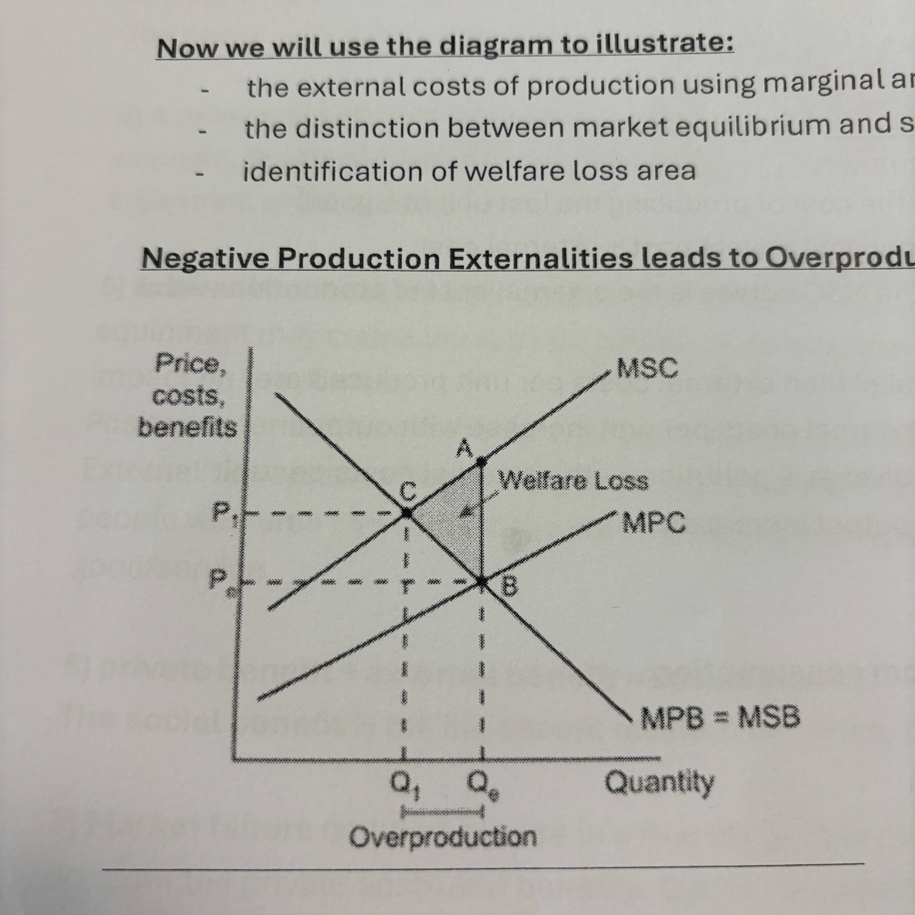 In free market consumers and prod only consider private costs - ignore social costs/benefits