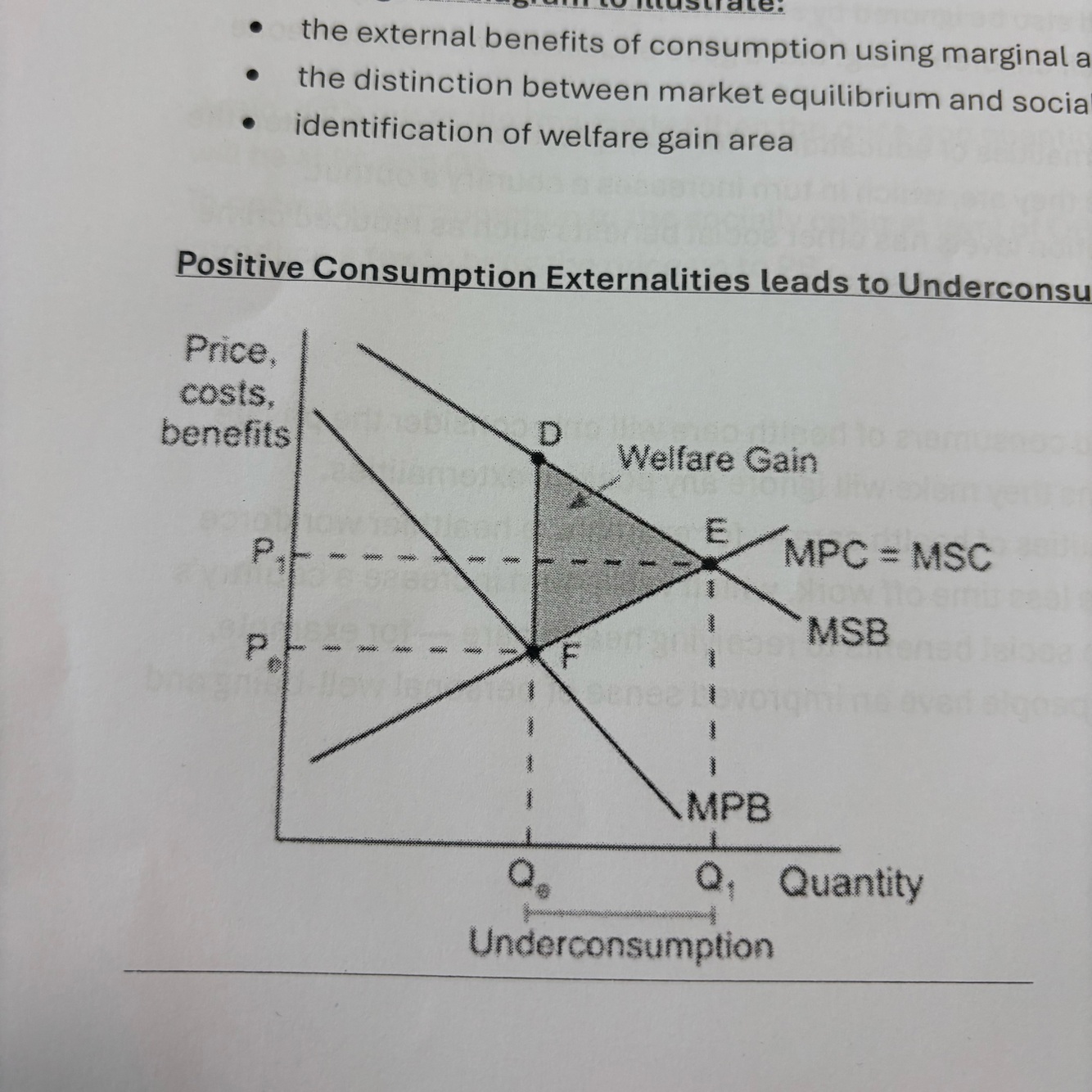 For each unit of thie good consumed between Qe and Q1 the MSB is greater than MSC