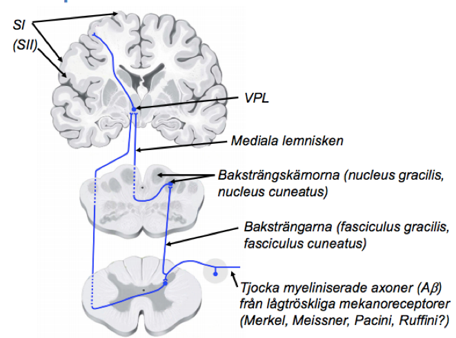 hur går exteroception singalen ifrån axonet ute i perfrin till baksträngskärnonra?