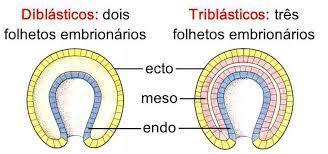 Animais diblásticos e triblásticos se diferenciam pelo número de…
