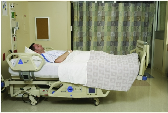 -Side rails, call bell, IV, catheter, SCD