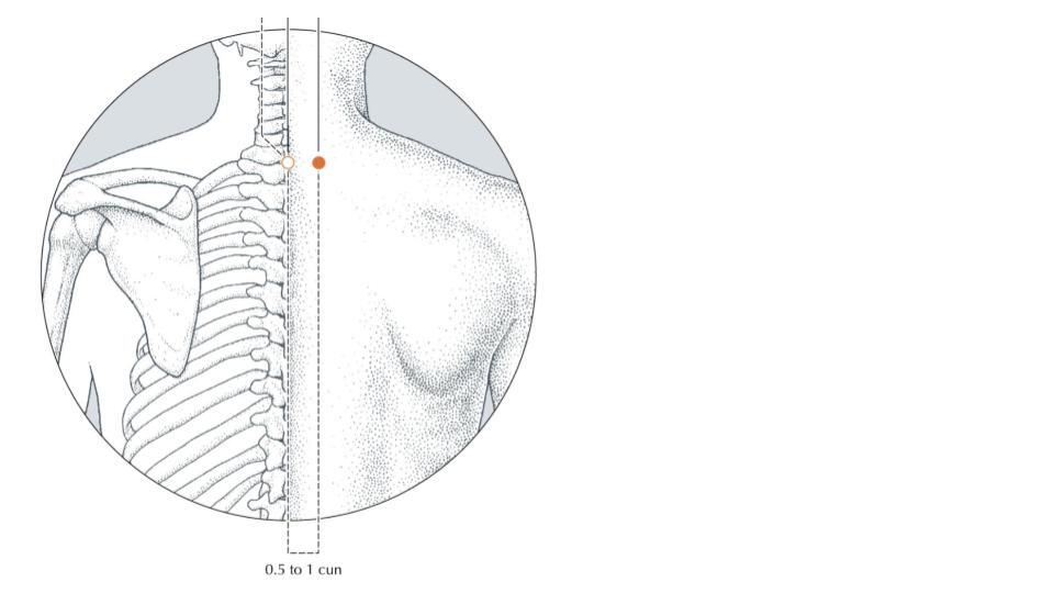 0.5 cun lateral to midline, level with the space inferior to the spinous process of C7