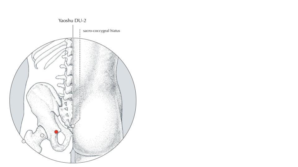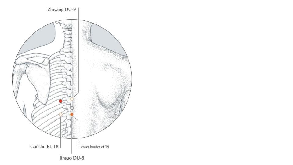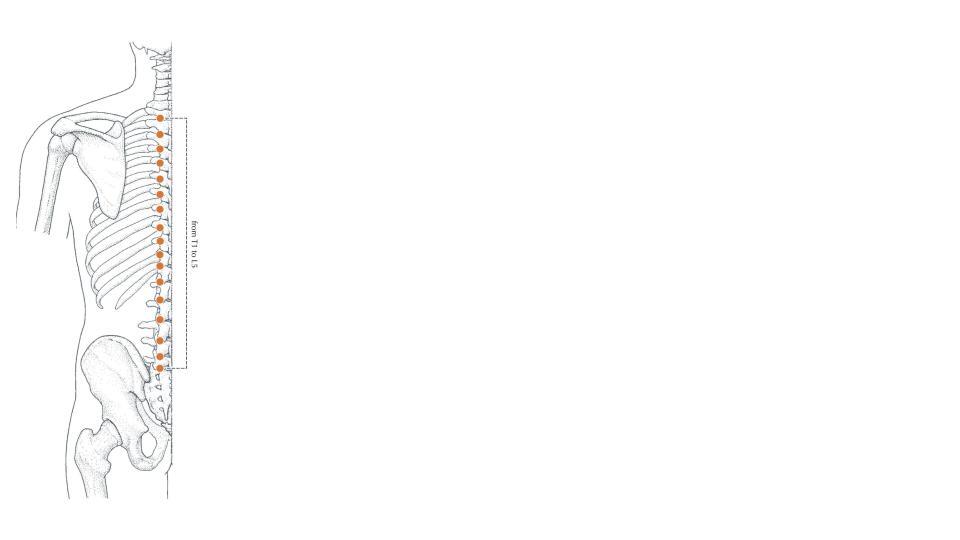 24 bilateral point, on either side of the spine. 0.5 to 1 cun lateral to the midline, level with the space inferior to each spinous process from C1-L5