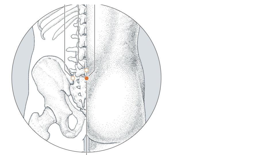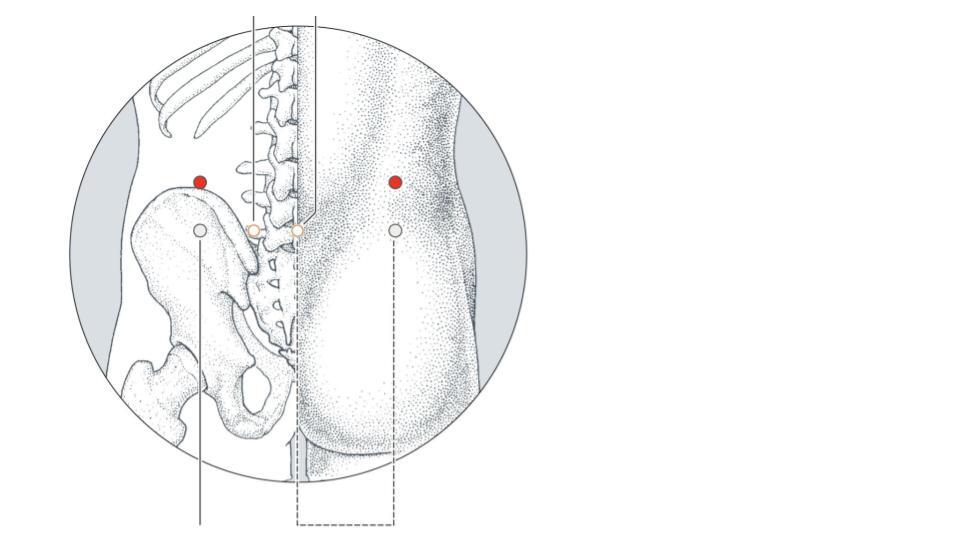 Note- not over pelvis as shown in deadman - this is a lumbar point