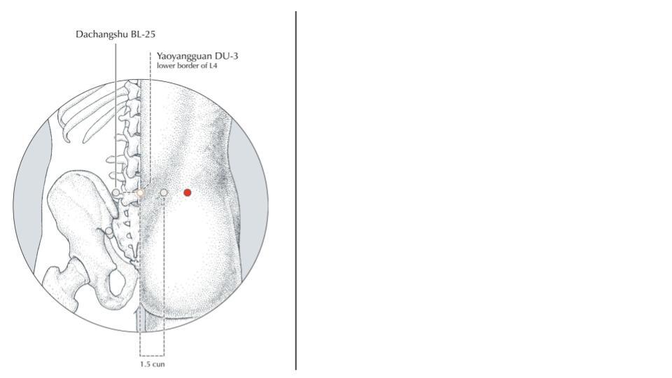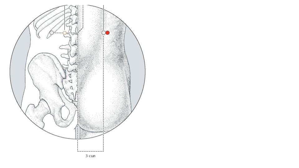 On the low back, 3 cun lateral to the space inferior to the spinous process of L4