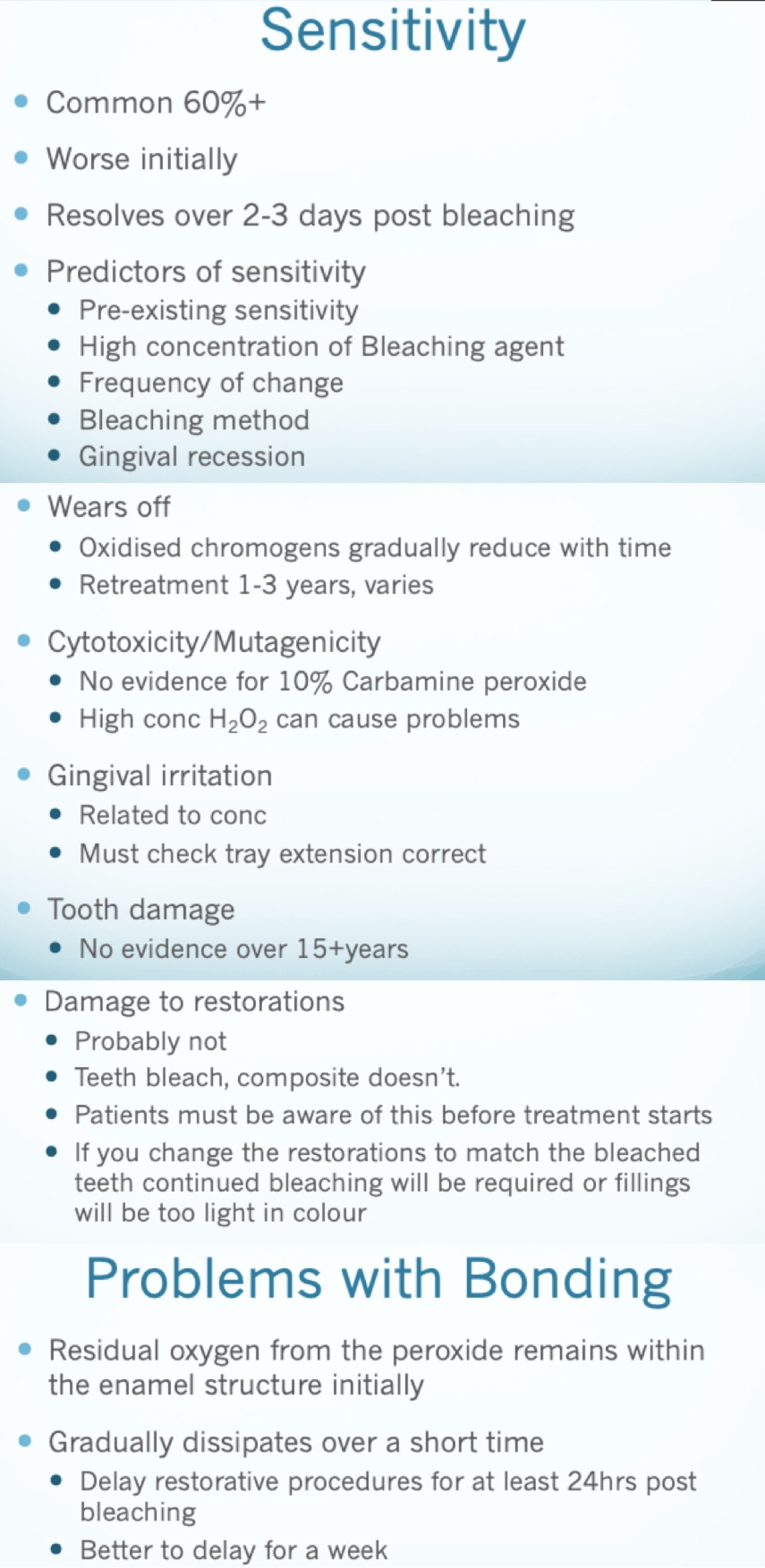 Sensitivity issues with tooth bleaching