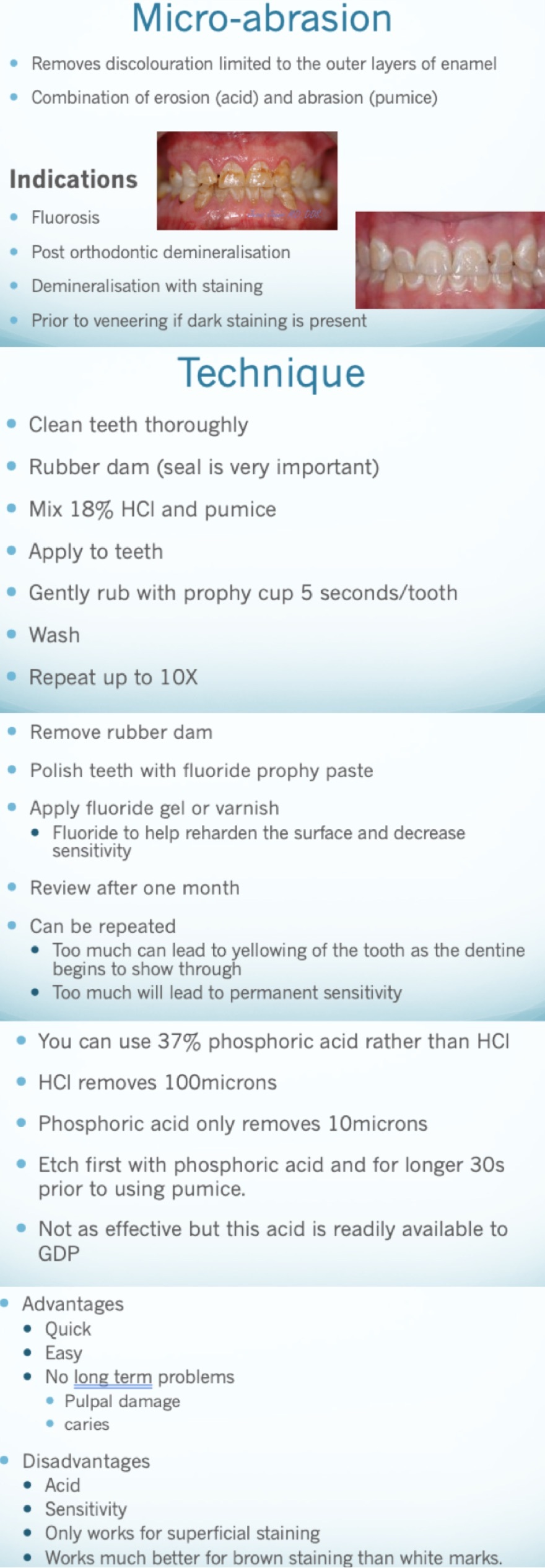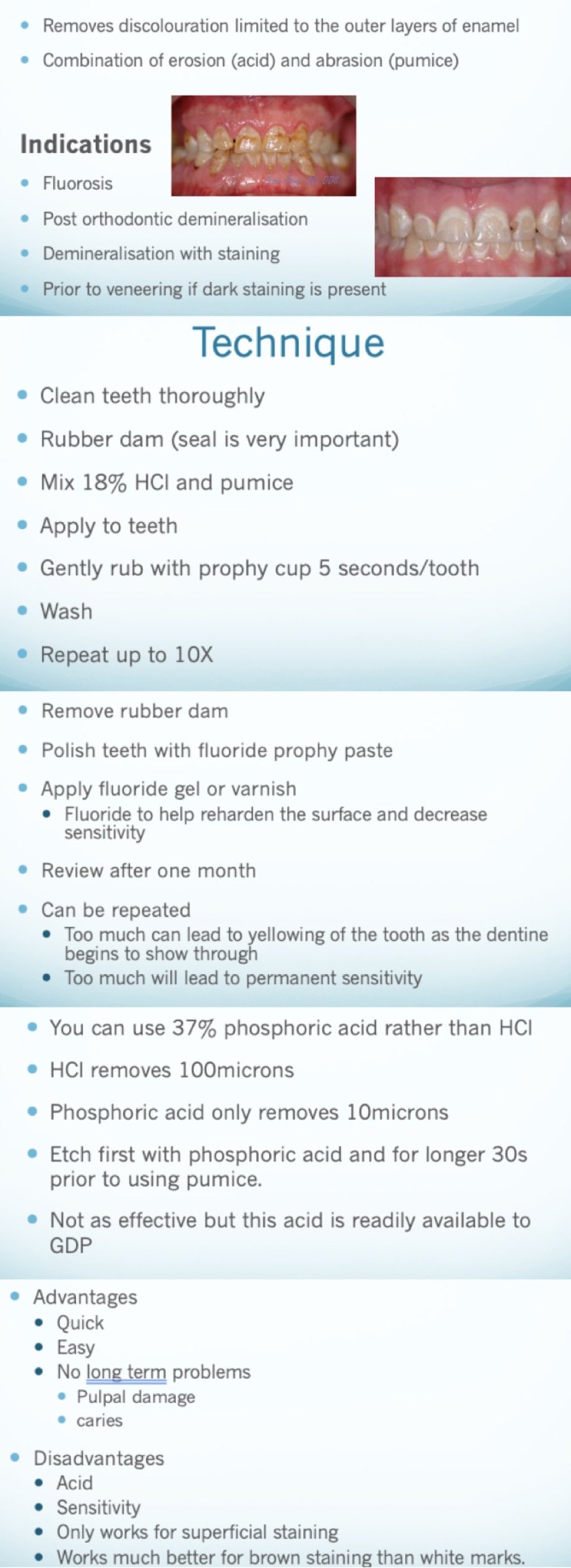 18% HCL and pumice mixed and prophy cup used for 5 secs per tooth to sand down with abrasion and erosion