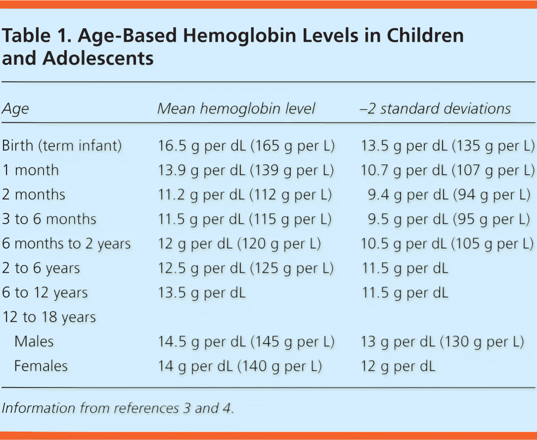 Anemia: A hemoglobin (Hb) concentration 2 SDs below the mean Hb concentration for a normal population of the same gender and age range
