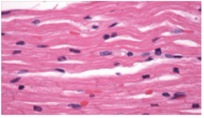 Fråga E8a (1p)Organen vid obduktionen:Hjärta: beskriv de mikroskopiska patologiska förändringar som finns i Katarinas hjärta, och vilken är patofysiologin för att det ser ut så?