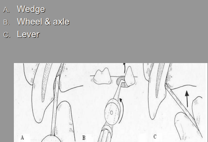 -wheel and axle: get under the tooth and rotate it along the area to take the tooth out. have to do after wedge