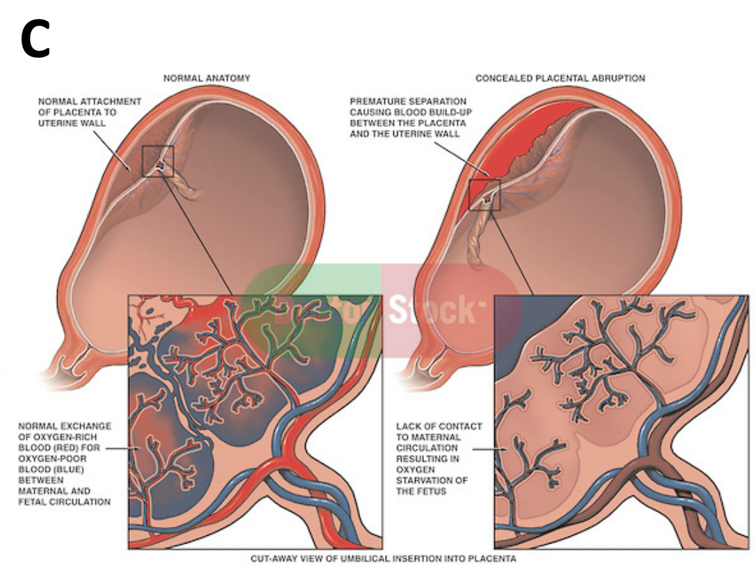 What are the potential causes of placental abruption?