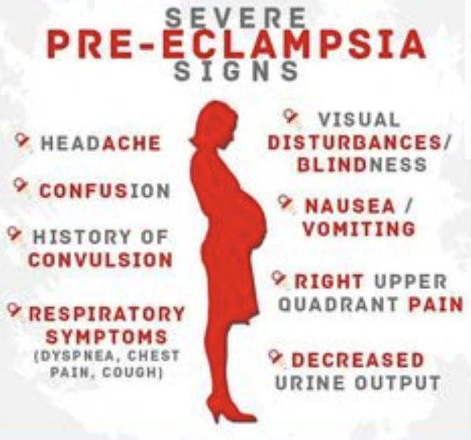What are the symptoms associated with pre-eclampsia?