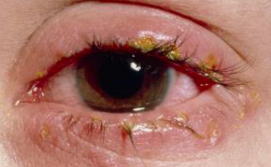 Burning, erythema, crusting, scaling, red rimming of the eyelid, gritty sensation,