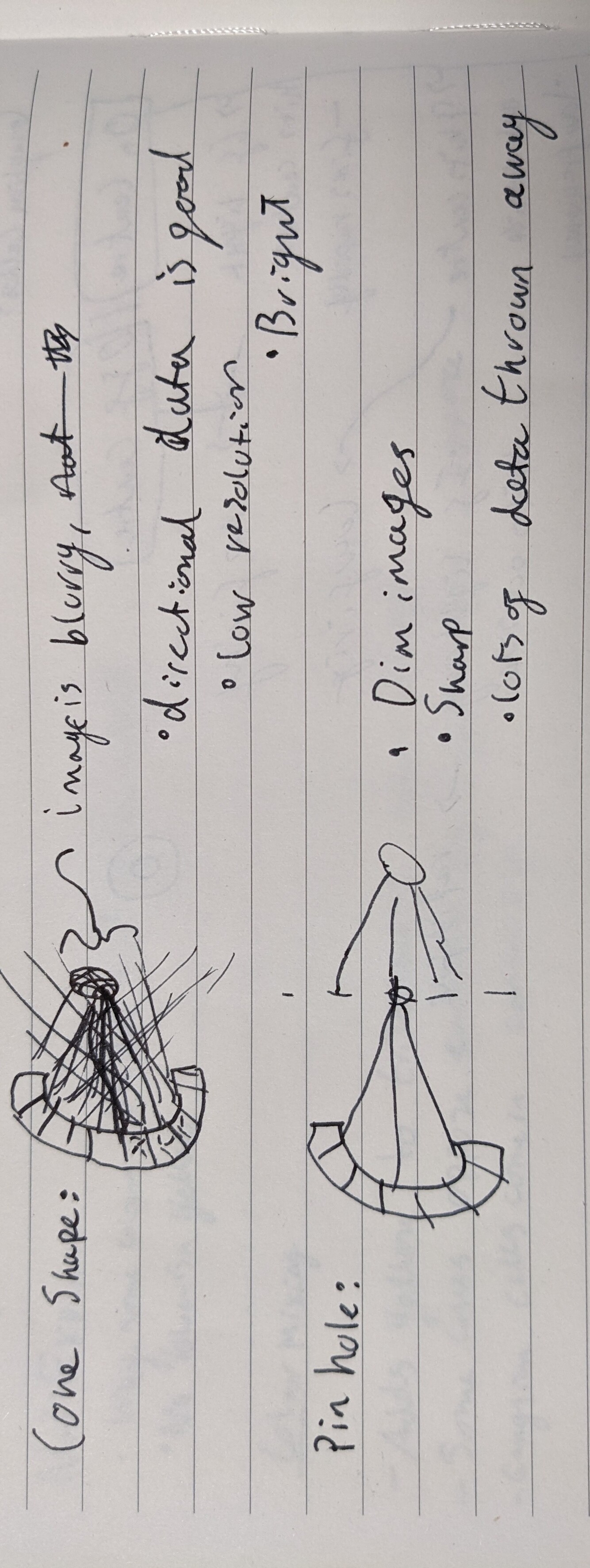 What is the difference between the cone shape and the pinhole