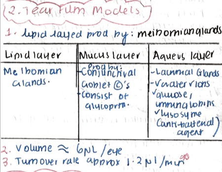 Describe the tear film model: